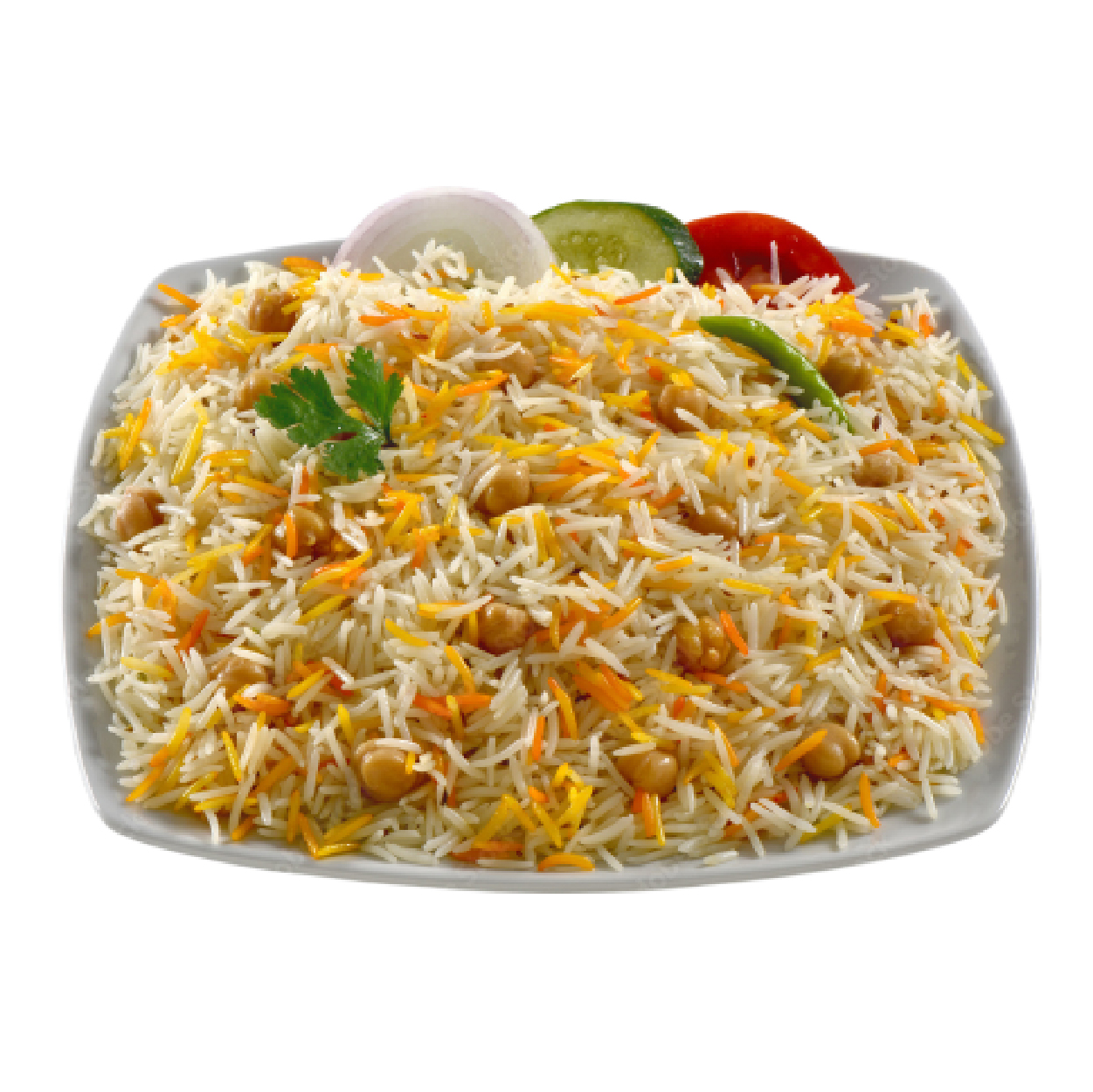 A flavorful twist on the classic biryani — made with fragrant basmati rice, tender chickpeas, and a blend of aromatic spices. This hearty vegetarian biryani is layered with rich flavors and served with a perfectly cooked potato, offering a satisfying and wholesome meal without any meat.